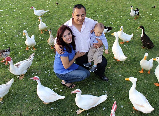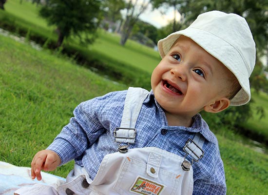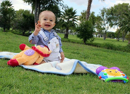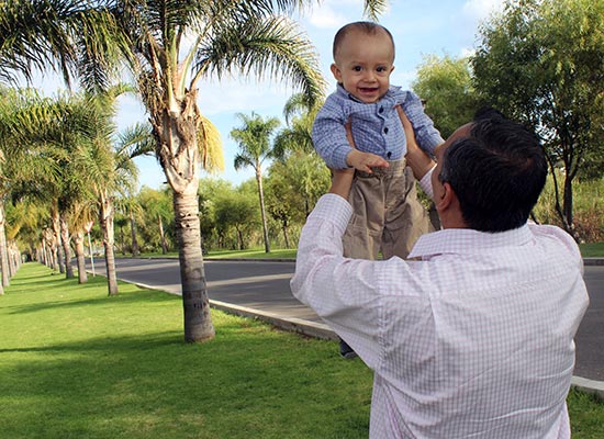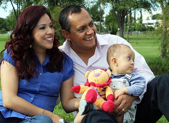 Estudio fotográfico casual en exterior de una pareja con su hijo.