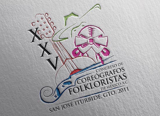 Diseño de logo y de aplicaciones para el congreso de coreógrafos folkloristas realizado en San José Iturbide en el 2011.